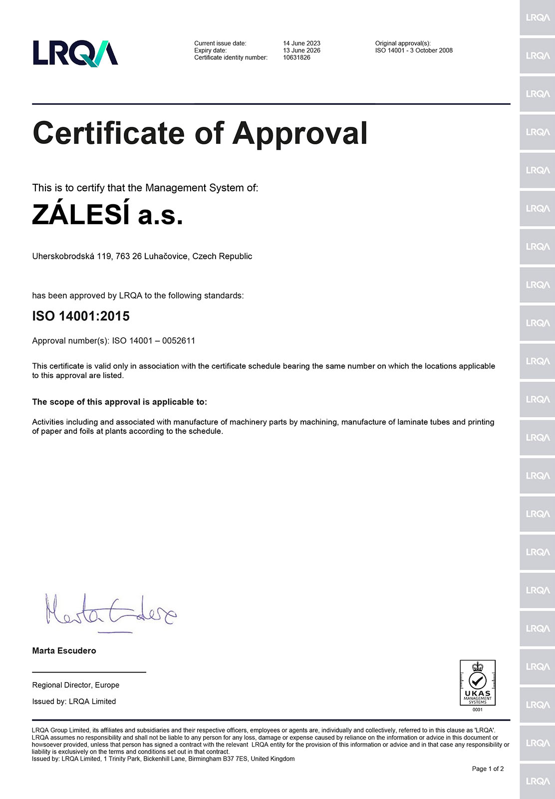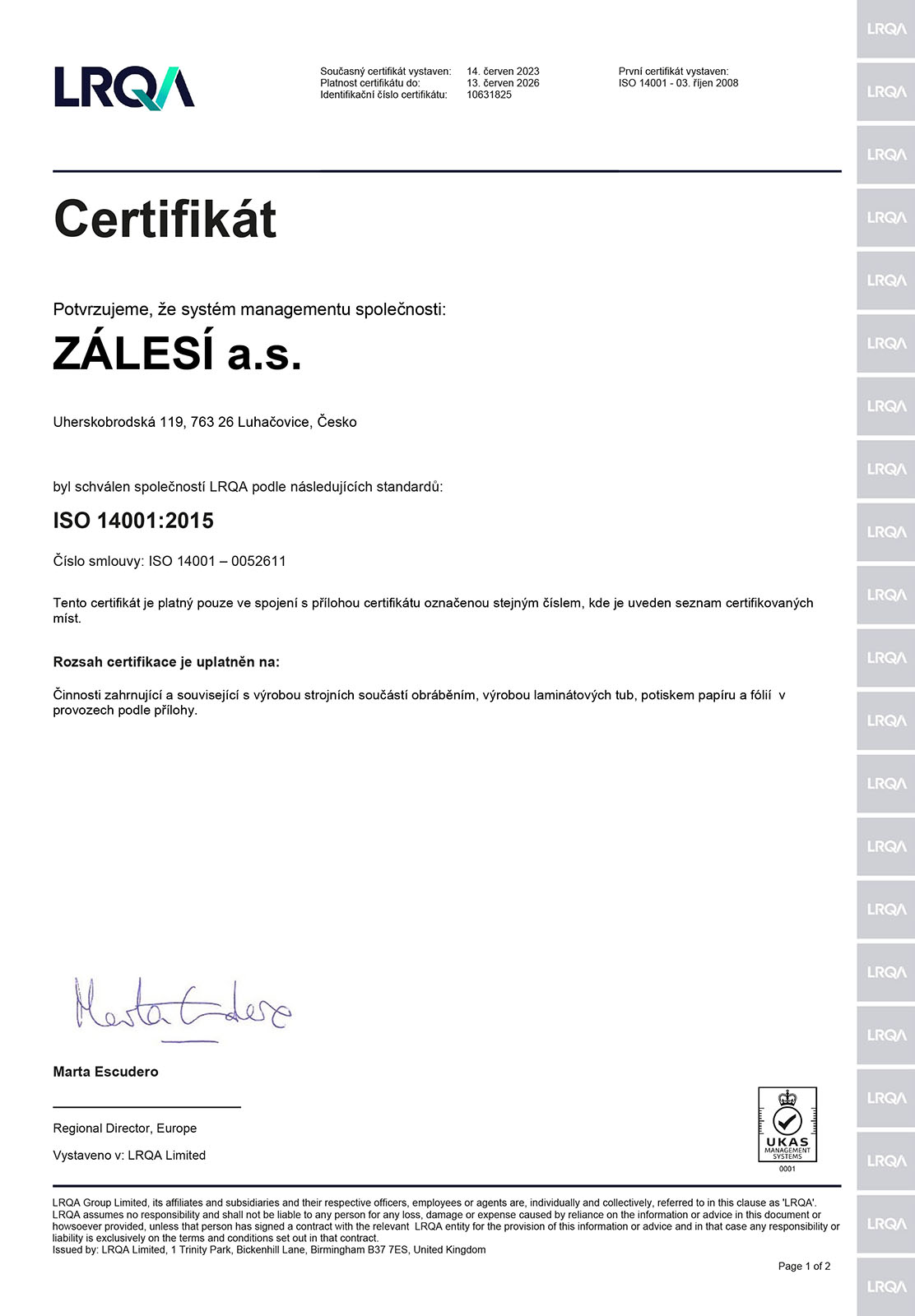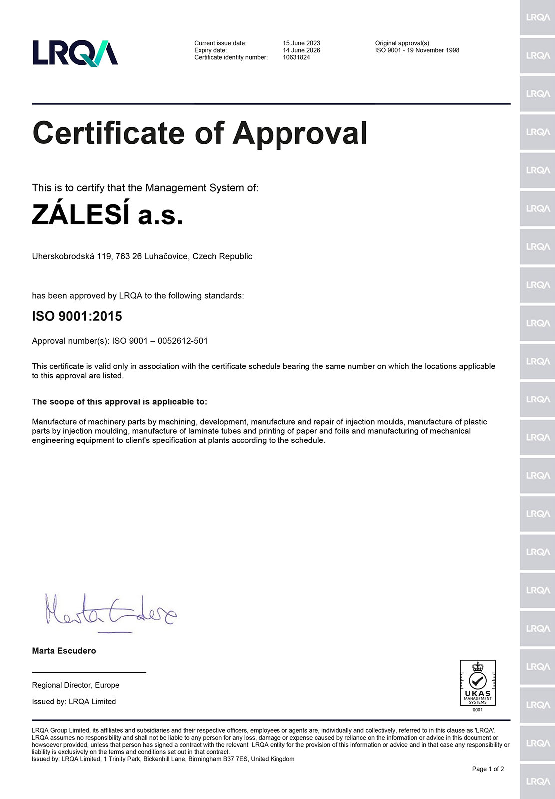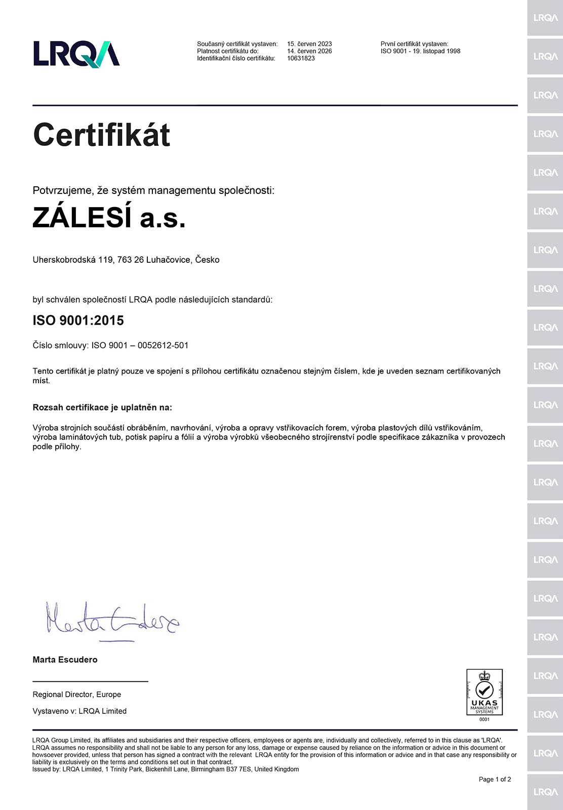 Společnost ZÁLESÍ a.s. je držitelem těchto certifikátů: