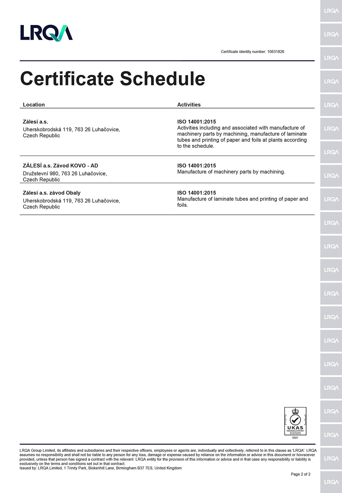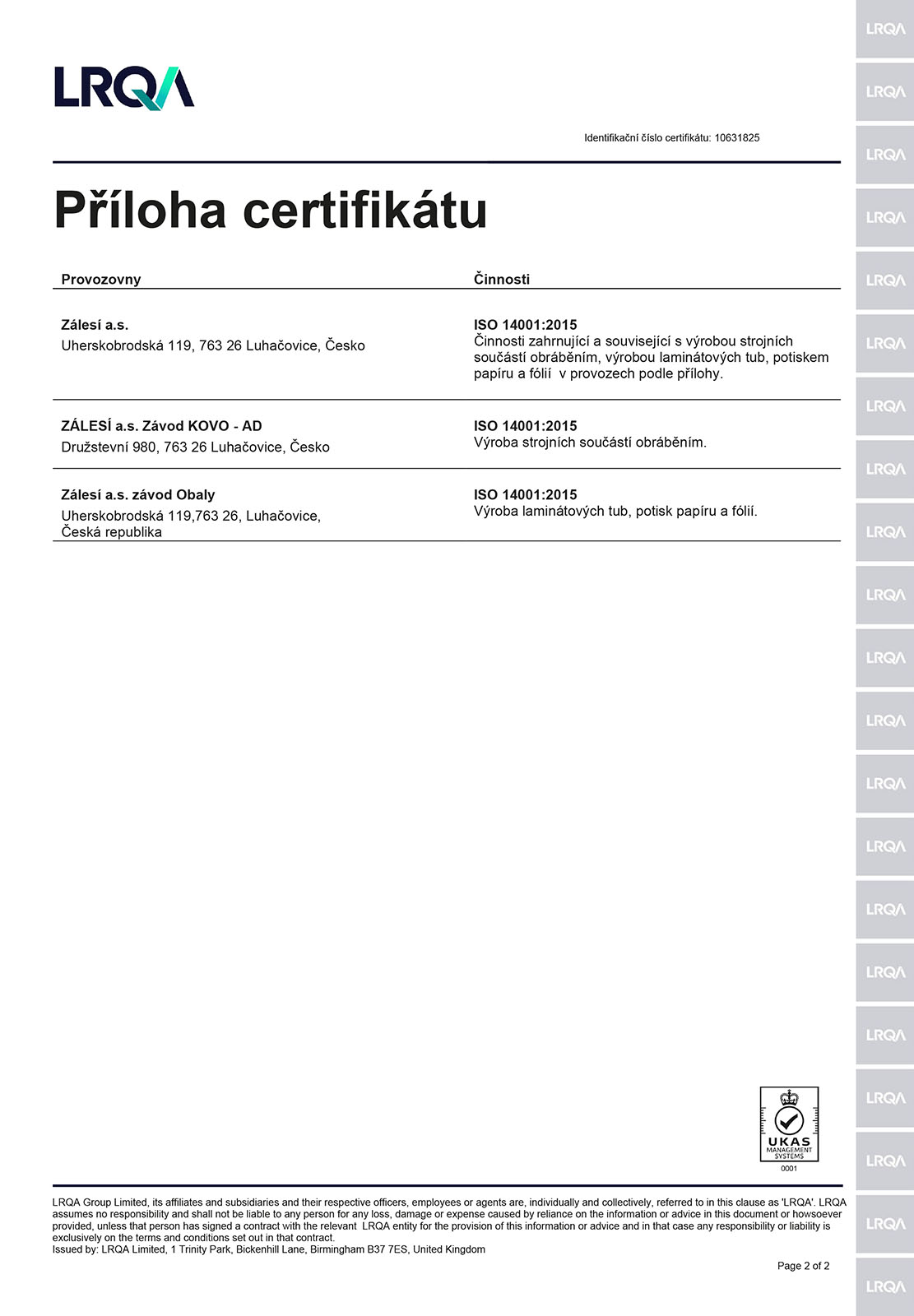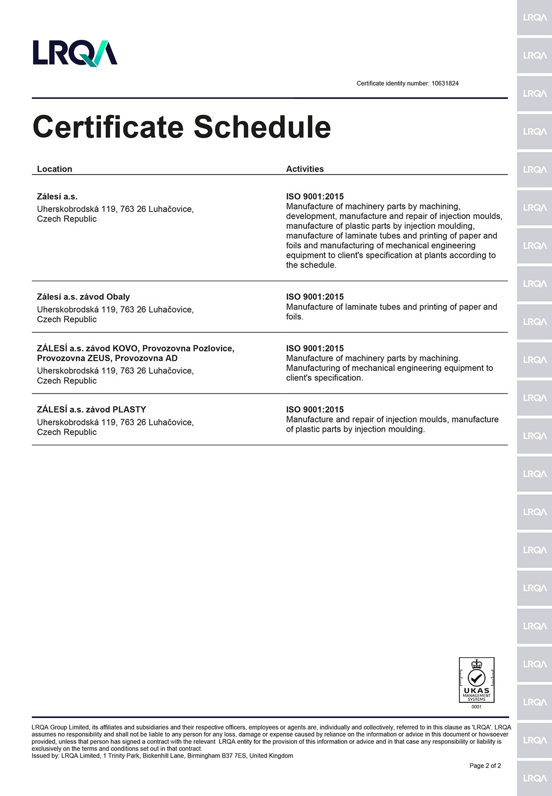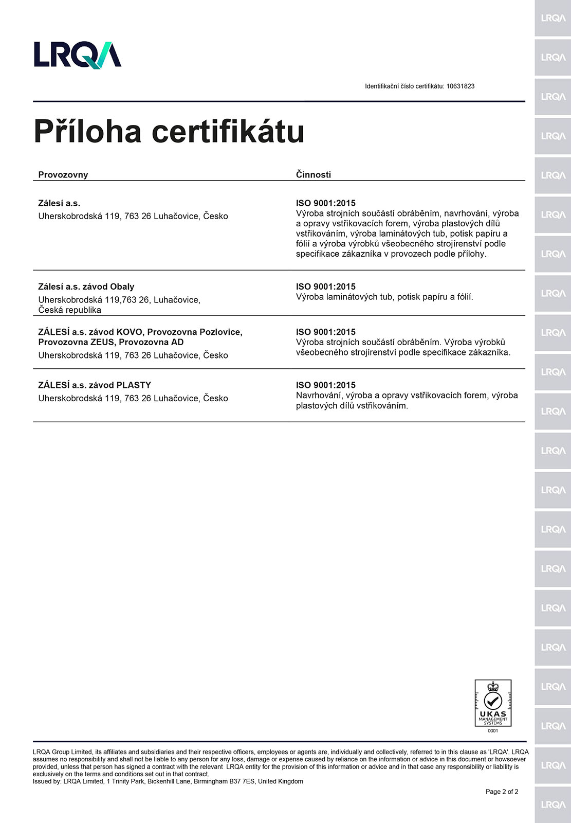 Společnost ZÁLESÍ a.s. je držitelem těchto certifikátů: